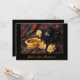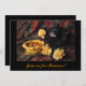 Easily customise the text on this beautiful Brinner invitation. What fun to serve breakfast for dinner. This invitation features a homemade orange apricot tart in a delectable pastry shell served on a glass plate accompanied by a navy blue teapot and three yellow gold carnation flowers. All are set on a lovely paisley fabric in shades of red, green, blue and purple. The fine art photography has been enhanced to produce the feeling of an old still life painting.