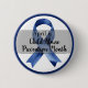At the centre of the button, a bold royal blue awareness ribbon stands as a symbol of prevention, advocacy, and hope for a safer future for children.
