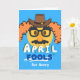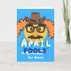 April Fools Character in Disguise with big orange hair, cowboy hat, and fake glasses, nose, and moustache. Add a name to the cover for a personalised April Fools’ Day greeting card for a child. Art, image, and verse copyright © Shoaff Ballanger Studios, 2022.