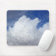 A Mouse pad with a photo of rain droplets on a window left after an April rain shower with a big soft fluffy cumulonimbus cloud in the background.