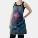Delantal artístico y único con diseño surrealista: una rosa azul de pétalos plateados guarda en su centro una cebolla morada con ojos llorosos. Ideal para amantes del arte, la cocina creativa y los regalos originales.