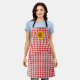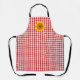 This apron is shown as is in a cute red and white gingham print with a sunflower accent.