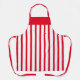 This apron is shown as is in a bold Red and white stripe print.