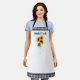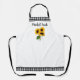 This apron is shown as is in a black, grey and white coloured gingham print with a cute market fresh sunflower print.