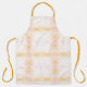 Apron with delicate pastel floral patterns in pink and yellow on a white background, featuring a bright orange neck strap. Feminine and elegant design.