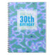 Beautiful abstract background (pastel colours: blue, light purple and turquoise) with a half-transparent white square tag (tiny transparent border) for name, date and birthday. All is customisable for this 30th birthday guest book.