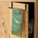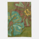 Aqua and Burnt Orange Flowers on Green Background Tea Towel