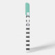 Personalised phone case with charcoal grey and white stripe pattern and aqua colorblock monogram. Use the design tools to customise the text or add your own photos.