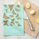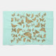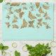 Pretty gold butterflies on an aqua background. Kitchen towel. There is a matching mug. Makes a nice housewarming gift.