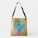 Aqua and Gold Ocean Palm Tree Summer Landscape Crossbody Bag