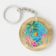 Aqua and Gold Ocean Palm Tree Summer Landscape Key Ring