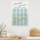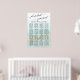 This aqua and gold watercolor beach seating chart poster is perfect for a tropical destination wedding. The simple and modern design features stunning turquoise, teal and light blue watercolor with a soft gold sparkle reminiscent of the sand and sea. It's paired with gorgeous elegant calligraphy. This wedding poster includes enough room for up to 16 tables (160 guests). In addition to the placement of each guest, personalise this sign with the names of the bride and groom and the wedding date. This seating chart can be used for a wedding reception or any special event.