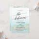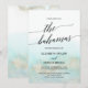 This aqua and gold watercolor beach Bahamas wedding invitation is perfect for a tropical destination wedding. The simple and modern design features stunning turquoise, teal and light blue watercolor with a soft gold sparkle reminiscent of the sand and sea. It's paired with gorgeous elegant calligraphy.