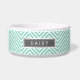 Custom designed dog food or water bowl with a chic girly modern chevron print pattern. Personalise it with your pet's name in a rectangle frame. Click Customise It to change text font and colours to create a unique one of a kind design!