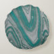 Aqua and Grey Wavy Layered Mineral Round Cushion
