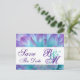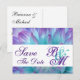 This aqua blue and purple flower petals design with its bride and groom monograms in ornate lettering is elegant way to send out your save the date announcements.