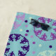 Look closely at this geometric pattern and you'll see that it features illustrations of synchronised swimmers in formation in shads of deep purple, medium purple. lavender and pale green set against an aqua blue or light teal background with polka dots accents. This beach towel is ready to be personalised with a name or other message in aqua blue against a dark purple background. Makes a great gift for synchronised swimmers and synchro coaches.