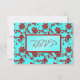 This red and aqua blue reply card matches the wedding invitation shown below. The back text and paper is all customisable. If you require any other matching items, please email your request to niteowlstudio@gmail.com.