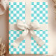 Aqua and White Chequerboard Pattern Wrapping Paper