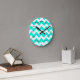 Aqua and White Chevron Pattern Round Clock