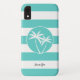 Aqua and White Sripes Palms Logo and Name Case-Mate iPhone Case