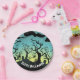 Aqua and yellow haunted graveyard Halloween Paper Plate