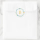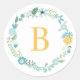 Aqua and Yellow Monogrammed Floral Wreath Classic Round Sticker