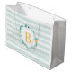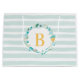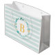 Aqua and Yellow Monogrammed Floral Wreath Large Gift Bag