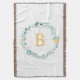 Aqua and Yellow Monogrammed Floral Wreath Throw Blanket