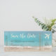 Aqua Beach Boarding Pass Ticket Save the Date Card