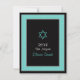 The text on this response card is fully customisable. To change the text, use the personalise options. For more extensive text changes, such as changes to the font, font colour, or text layout, choose the customise option. The Star of David can be removed as well. This aqua blue and black polka dot response card could also work as a direction, reception, accommodation, and/or general information insert card with changes to the text.