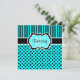 This aqua blue and black polka dots and stripes Sweet 16th birthday party invitation can also be customised for a Quinceanera, Bat Mitzvah, bridal shower, engagement party, and many other special events. The text and paper choice is customisable. If there are any matching items you would like in this design, such as RSVP's, thank you cards, save the date cards, etc., please email niteowlstudio@gmail.com with your request.