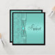Have a glamourous Sweet 16, Bat Mitzvah, or Quinceanera, with this square aqua and black floral birthday party invitation with a PRINTED ON ribbon and bow with a PRINTED aqua-marine gemstone and diamond jewel brooch on it. All the text is customisable and so are the paper choices. If there are any other items you need to make your day extra special, please email your request to niteowlstudio@gmail.com.