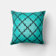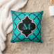 Aqua Black Quatrefoil Pattern Monogrammed Pillow