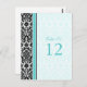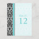 Use the personalise option to change the table number on these elegant aqua or turquoise, black, and white damask table cards. Please NOTE: You MUST change the table number on each card and add one of each number to your cart. If you want to do more extensive changes including changing the font, font colour, or font size use the customise option.