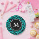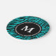 Aqua Black Zebra Stripe Monogram Paper Plate