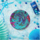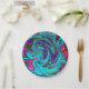 Aqua Blue and Black Groovy Abstract Retro Art Paper Plate