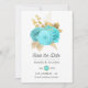 Aqua Blue and Gold Floral Wedding Save The Date