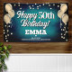 Fun banner sign for indoors or out, featuring festive gold metallic balloons on both sides of the design with sparkly, gold metallic confetti on a rich textured aqua blue coloured background for your personalised birthday banner. This product doubles as a wonderful milestone birthday keepsake.