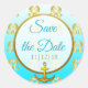 Aqua Blue and Gold Seahorse Save the Date Wedding Stickers