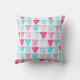 Aqua Blue and Pink Triangles Geometric Pattern Cushion