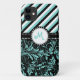 Aqua Blue and White Damask with stripes & monogram Case-Mate iPhone Case