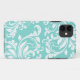 Aqua Blue and White Floral Damasked Pattern. Custom iPhone 4, 4S case.