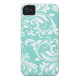 Beautiful Aqua Blue and White Floral Damasked Pattern. Girly iPhone 4, 4S case.