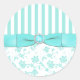 This aqua blue and white floral striped sticker/envelope seal matches the invitation and other items shown below. You can use it on your outgoing wedding invitations as a seal, or attach it to wedding favours.