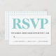 Aqua blue and white typography geometric wedding RSVP response card. The back includes an aqua blue and white geometric pattern.