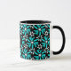 Aqua Blue & Black Batik Flower Pattern Monogram Mug