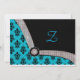 Aqua Blue & Black Damask Gem Sparkle Invitation