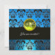 AQUA BLUE BLACK DAMASK MONOGRAM, yellow topaz Invitation