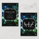 Aqua blue green Black Geometric Smoky Abstract Monogram Business Card. Personalise cool biz cards with your initial and name. Triangle Geometric Smoky Galaxy pattern made from one photo of a dust with triangles placed over.